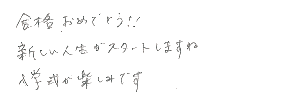 とにかく優しく教えていただけたのがうれしかったです。先生によって個性があったのも、授業を受けていて楽しかったです。難しい問題にぶち当たったときに、一緒に「これは難しいね!」と一緒にできるまで教えてくださったのが、心強かったです。