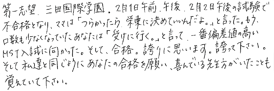 2023年度 T.Kさん 三田国際学園中合格体験