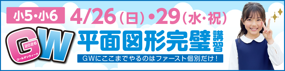小5・小6を対象とした 「GW平面図形完璧講習」のご案内ページを公開しました。