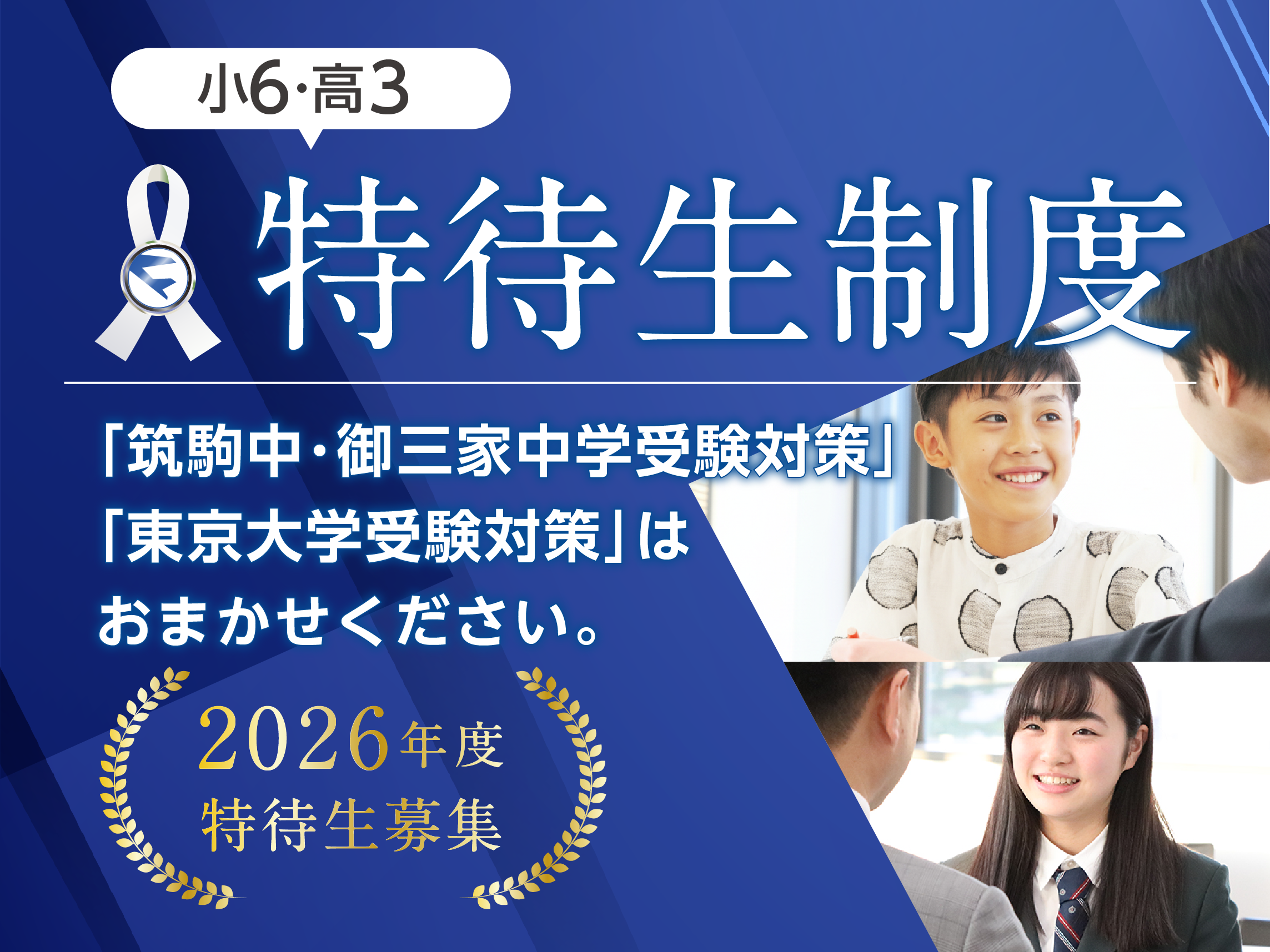 2026年度 特待生情報が公開されました。 ・【小6】筑駒・御三家中受験 特待生 ・【高3】東京大学受験 特待生
